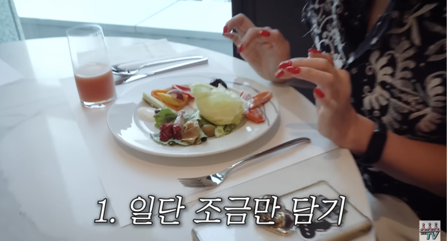 설레는 조식뷔페에 나선 한혜연은 일단 세 접시를 먹을 것이라며 "아침에 치즈 먹는 거 진짜 좋아한다"라고 전했다. 과일 위주, 요거트, 올리브 등을 소량씩만 담았다.