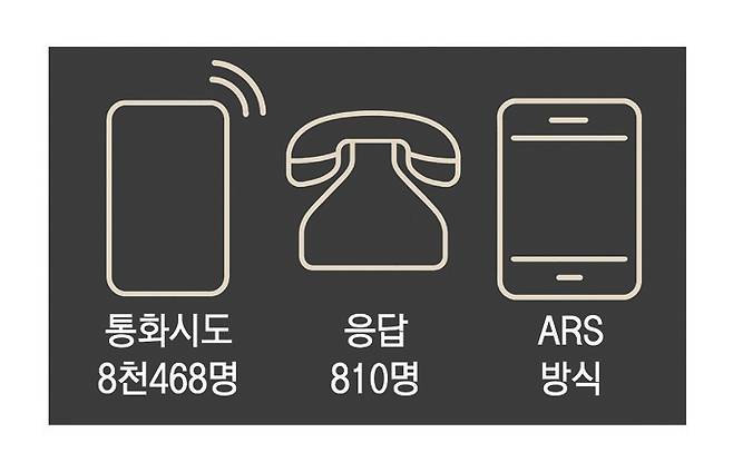 국내 통신 3사가 제공한 무선 전화 가상번호(100%)를 활용했으며, 구조화된 설문지를 이용한 자동응답(ARS)방식으로 진행했다.