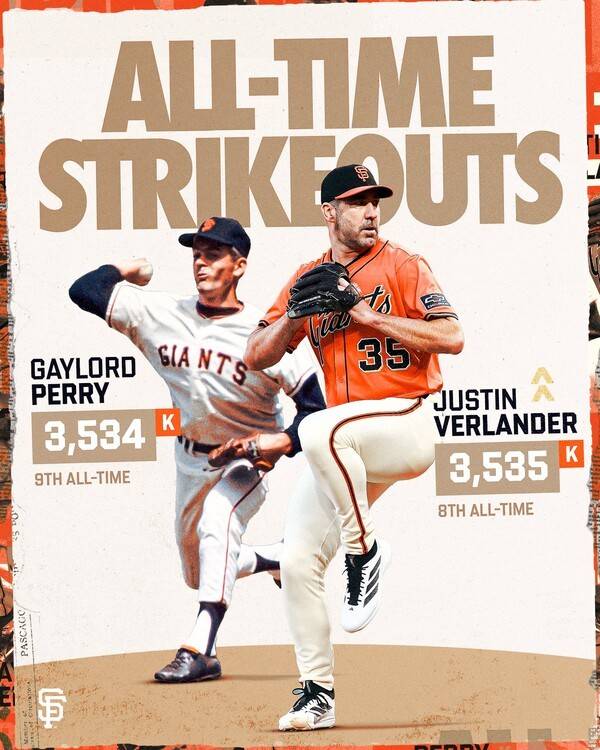 저스틴 벌랜더(42·샌프란시스코 자이언츠)가 통산 3,536번째 탈삼진을 기록, 명예의 전당 입성을 향한 또 하나의 인상적인 발걸음을 내디뎠다.