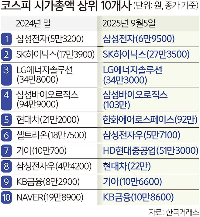 ‘조방원(조선·방산·원전)’ 돌풍에… 2025년 코스피 시총 지각변동