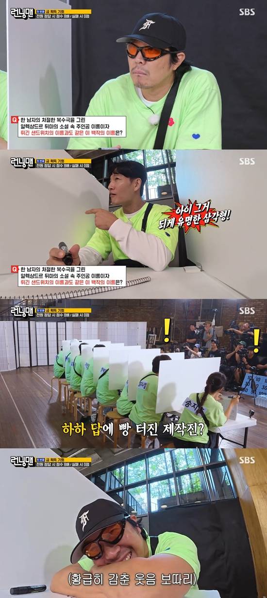 여러 멤버가 답을 맞힌 와중에 하하는 '이삭'이라는 오답으로 폭소를 자아냈다. 마음이 상한 하하는 "솔직하게 얘기하면 너무 하기 싫다"라고 고백했다. 이에 김종국은 "난이도가 그렇게 어렵지 않다"라며 그를 설득했다.