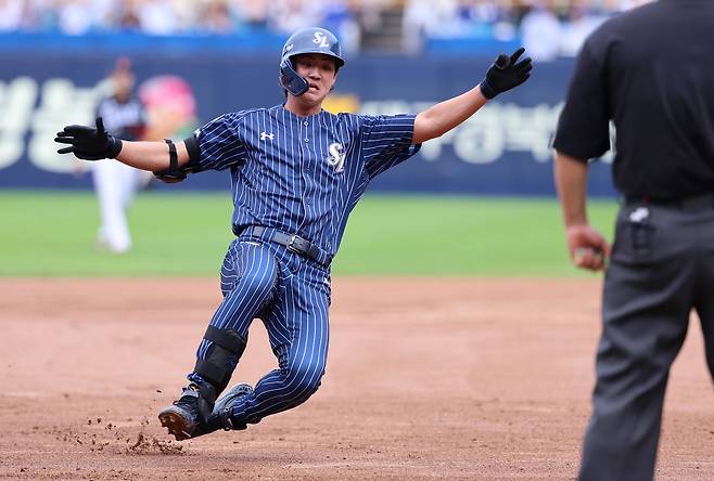 선두타자 김지찬이 유격수 직선타로 물러난 뒤 김성윤이 황준서와 풀카운트 승부 끝에 볼넷을 골라 나갔다.