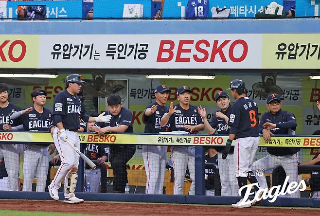 후속타자 노시환도 바뀐 투수 김태훈에게 좌전 적시타를 뺏어내면서 삼성을 4-3, 한 점 차로 압박했다.