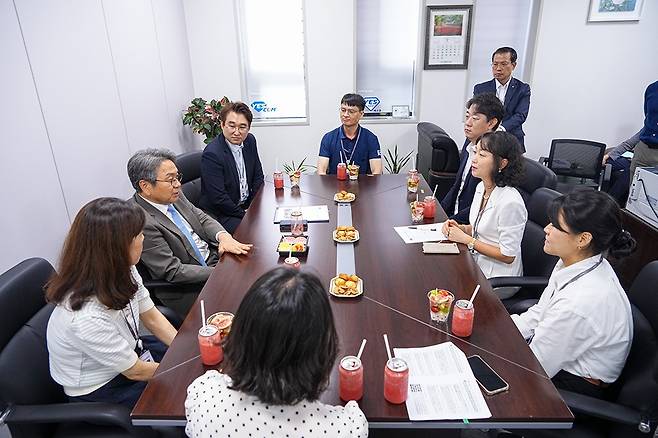 강기정 시장은 지난 2일 초등학부모 10시 출근제를 도입해 가족 친화 경영의 귀감이 되고 있는 ‘광은비즈니스㈜’ 현장을 찾아 10시 출근제 참여 부모들의 목소리에 귀를 기울였다.