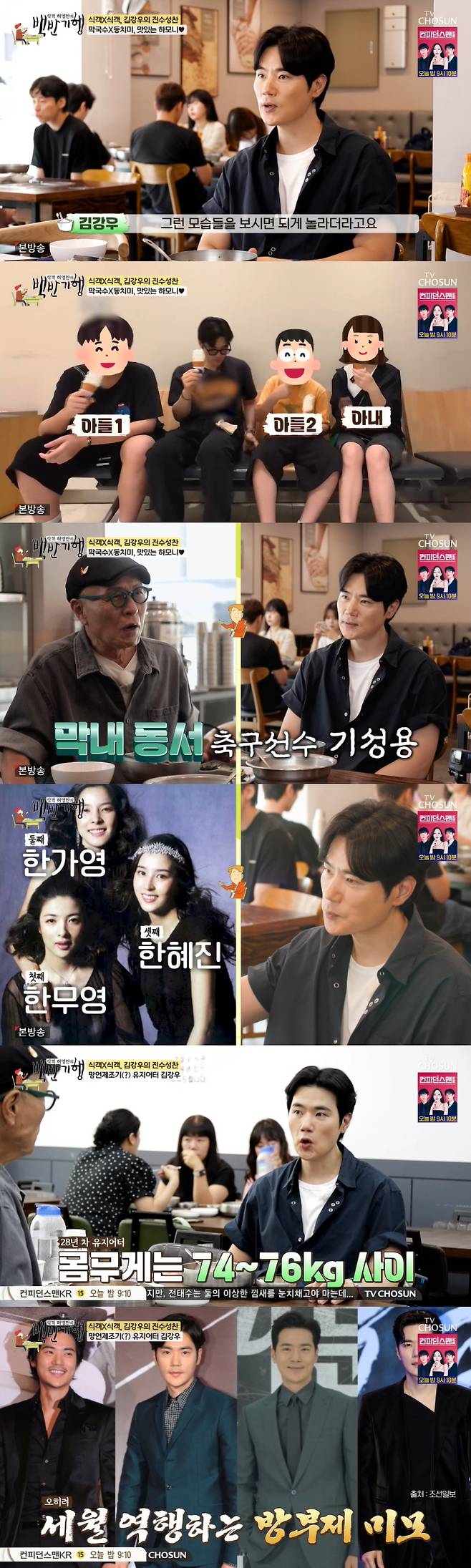 막내 동서 축구선수 기성용, 둘째 동서 조재범 셰프 이야기가 나오자, 허영만은 "가족의 네임밸류가 만만치 않다"라고 놀랐고 김강우는 "예체능인이 많다"라며 웃었다.