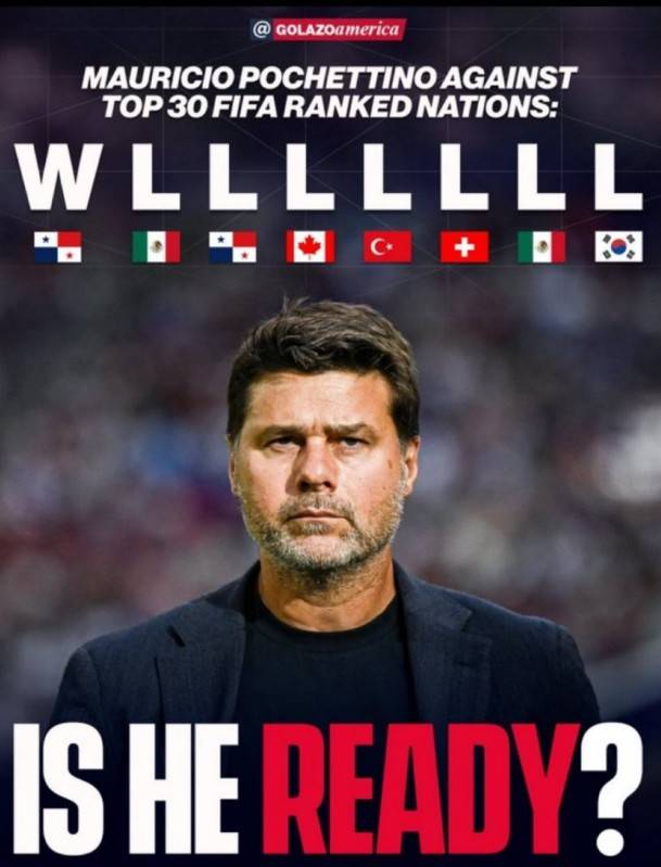 포체티노 감독은 부임 후 한국을 포함해 멕시코, 튀르키예, 스위스 등 FIFA랭킹 톱 30 안에 드는 국가들과 총 8번 경기를 치렀는데, 고작 1승 7패다.