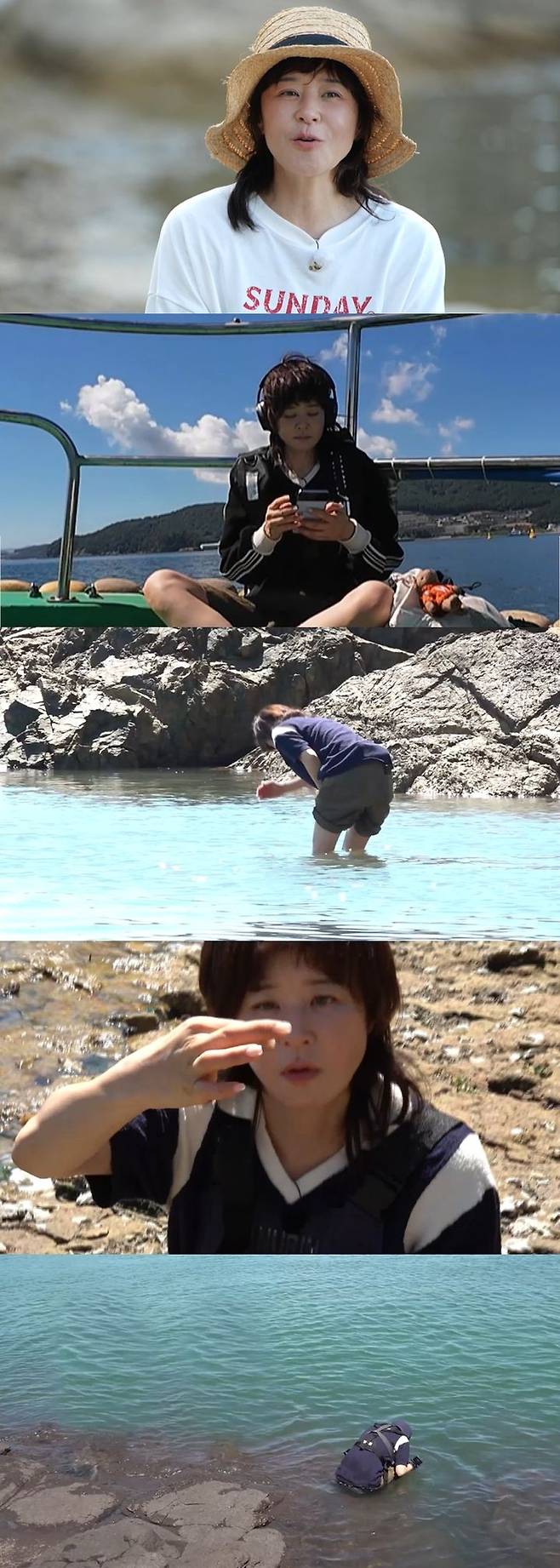 최강희는 무인도에 도착하자마자 신발과 양말을 벗어 던지고 옷을 입은 채로 바다에 뛰어든다.