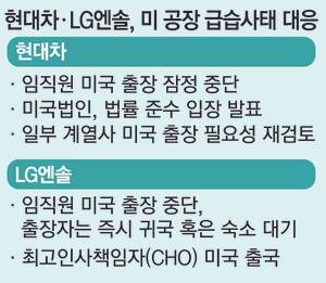 LG에너지솔루션도 역시 고객 미팅 등을 제외한 미국 출장을 전면 중단하고, 현재 출장자는 업무 현황 등을 고려해 즉시 귀국 또는 숙소에 대기하도록 하는 임직원 지침을 내렸다. 김기수 LG에너지솔루션 최고인사책임자(CHO·전무)는 직원들과 협력업체 직원들의 조기 석방을 위해 이날 미국으로 긴급 출국했다.
