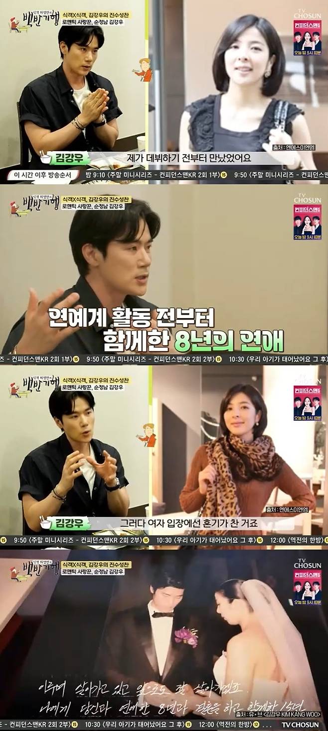 이에 김강우는 "제가 (아내를) 데뷔하기 전부터 만났다. 오디션 보고 데뷔하며 8년이 지났다"며 "여자 입장에서 혼기가 찼다. 저야 남자 서른셋은 아직 그럴 나이가 (아니)지만"이라며 결혼하게 된 이유를 전했다.