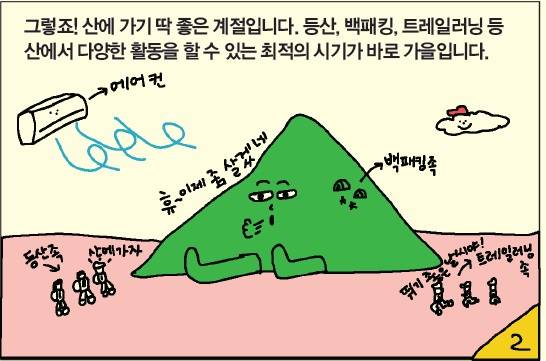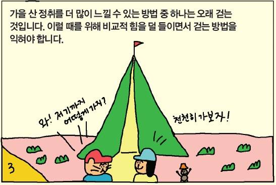 "후, 하, 후, 하" 규칙적으로 오르면 편해요 [만화등산백과 잘 걷는 방법] 윤성중 2025. 9. 8. 07:31 음성으로 듣기 음성재생 설정 이동 통신망에서 음성 재생 시 데이터 요금이 발생할 수 있습니다. 글자 수 10,000자 초과 시 일부만 음성으로 제공합니다. 남성 여성 느림 보통 빠름 음성 재생하기 닫기 음성 재생 중지 번역 설정 번역beta Translated by kaka i 한국어 - English 영어 日本語 일본어 简体中文 중국어 Nederlands 네델란드어 Deutsch 독일어 Русский 러시아어 Malaysia 말레이시아어 বাঙ্গোল ভাষা 벵골어 tiếng Việt 베트남어 Español 스페인어 اللغة العربية 아랍어 Italiano 이탈리아어 bahasa Indonesia 인도네시아어 ภาษาไทย 태국어 Türkçe 튀르키에어 Português 포르투갈어 Français 프랑스어 हिन्दी 힌디어 닫기 번역중 Now in translation 글씨크기 조절하기 글자크기 설정 파란원을 좌우로 움직이시면 글자크기가 변경 됩니다. 가 매우 작은 폰트 작은 폰트 보통 폰트 큰 폰트 매우 큰 폰트 가 이 글자크기로 변경됩니다. (예시) 가장 빠른 뉴스가 있고 다양한 정보, 쌍방향 소통이 숨쉬는 다음뉴스를 만나보세요. 다음뉴스는 국내외 주요이슈와 실시간 속보, 문화생활 및 다양한 분야의 뉴스를 입체적으로 전달하고 있습니다. 닫기 인쇄하기 월간산 9월호 기사입니다. Copyright © 월간산. 무단전재 및 재배포 금지.