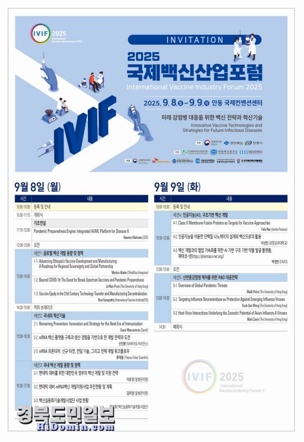경상북도는 8, 9일 안동국제컨벤션센터에서 '미래 감염병 대응을 위한 백신 전략과 혁신기술'을 주제로 '2025 국제백신산업포럼'을 연다.