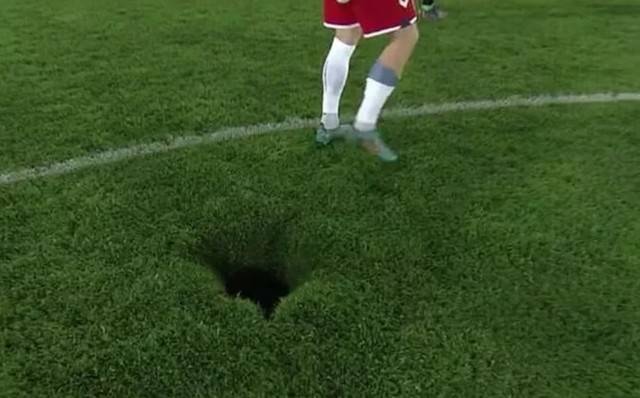 축구경기장에서 경기 도중 싱크홀이 발생하는 건 굉장히 진귀한 현상이다. 하지만 아예 발생할 수 없는 일은 아니다. 한국에서도 이런 일이 발생한 바 있다. 지난 2023년 8월 수원 FC와 인천 유나이티드의 대결 도중 싱크홀이 발견되었으며, 당시 수원 FC 소속이던 김현의 발이 싱크홀에 빠지는 일도 있었다.