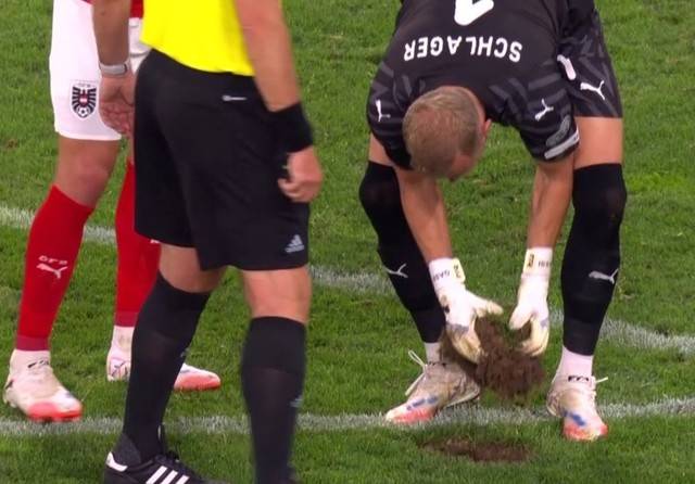 그런데 이 경기에서 후반 30분 무렵 오스트리아 진영 박스 인근에서 공 한 개가 통째로 들어갈 만한 깊이와 너비의 구멍이 발견되어 경기가 중단되는 일이 발생했다.