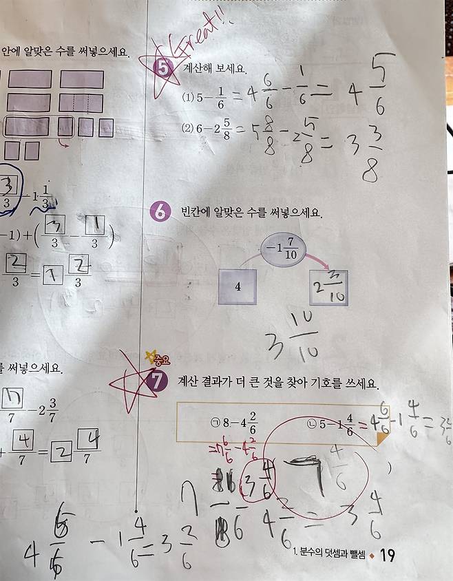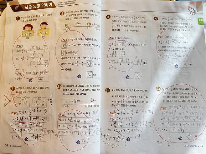 참고로 이 문항에는 "★중요" 표시가 붙어 있다. <왕수학 기본편>은 단순 계산 연습용은 아니다. 기본 문제처럼 보여도 개념을 건드리는 경우가 많아 아이들은 어렵게 느낀다. 초등 수학에 익숙하지 않은 부모라면, 이런 ★중요 문항에서 '왜 중요한지, 어떤 개념을 다루는지' 함께 짚어보는 것이 좋다.