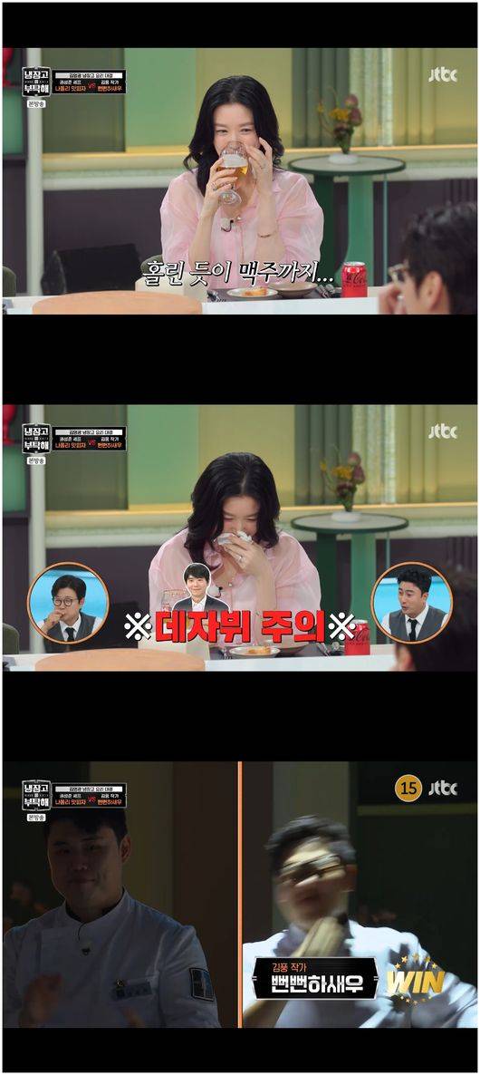또한 이영애는 번데기와 새우로 튀김 볶음 요리를 만들어낸 김풍의 요리에 홀로 경악하지 않았다. 자신이 사두고도 덜덜 떨던 김영광은 “맥주까지 들어가니까 확 풀어지는 맛이다”라며 너무 맛있다고 극찬했다.