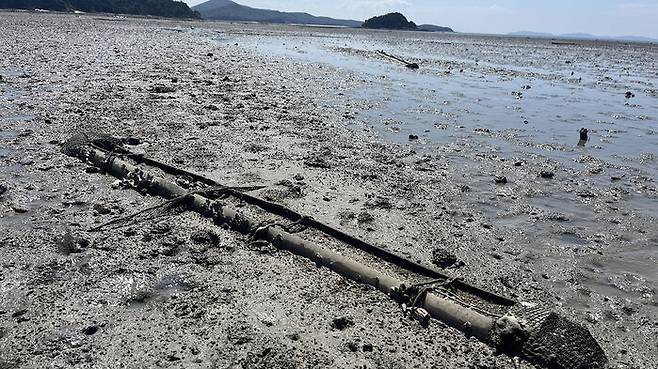 인천 중구 용유도 해변에서 PVC 관을 이용한 칠게잡이용 불법어구가 무더기 발견됐습니다.