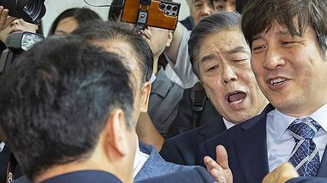 사람들이 일시에 몰리면서 계단에서 넘어질 뻔한 아찔한 상황도 포착됐고, 김 관장이 앞을 가로막는 남성을 향해 "당신은 누구냐. 왜 못 지나가게 막는 것이냐"며 소리치기도 했습니다.