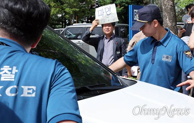 김 관장은 결국 경찰 등의 도움을 받아 겨우 소통관 건물 밖으로 빠져나올 수 있었다. 그가 주차장까지 걸음을 옮기는 데만 20분이 걸렸다.