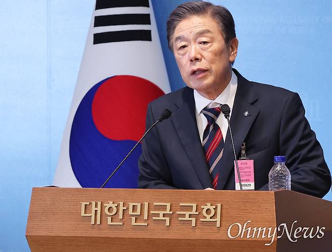 | ▲ 국회서 기습 기자회견 연 김형석 뉴라이트 역사관 논란을 일으켜온 김형석 독립기념관장이 8일 국회 소통관에서 기습 기자회견을 하고 있다. |