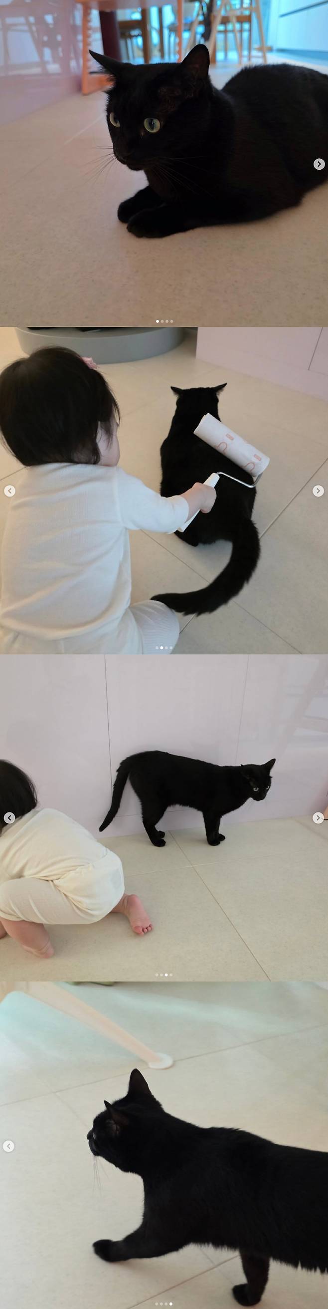 공개된 사진에는 딸 재이 양과 반려묘 다홍이의 알콩달콩한 일상이 담겨 눈길을 끌었다.