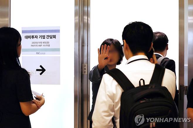 (서울=연합뉴스) 이진욱 기자 = 8일 서울 여의도 한국경제인협회에서 열린 대미 투자기업 간담회에서 참석자들이 입장하고 있다. 이날 간담회는 박종원 통상차관보 주재로 현대기아차, LG엔솔, 삼성전자, SK하이닉스, SK온, LS, 두산, LG화학, 롯데, HD현대 등 주요 대미 투자 기업 관계자들이 참석했다. 2025.9.8