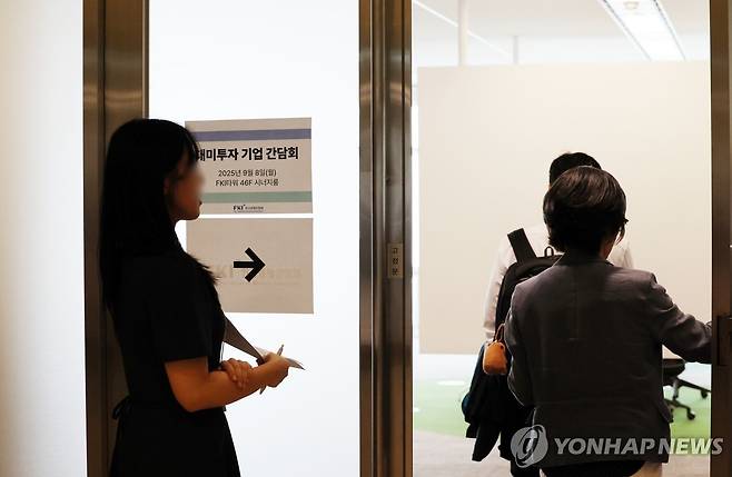 (서울=연합뉴스) 이진욱 기자 = 8일 서울 여의도 한국경제인협회에서 열린 대미 투자기업 간담회에서 참석자들이 입장하고 있다. 이날 간담회는 박종원 통상차관보 주재로 현대기아차, LG엔솔, 삼성전자, SK하이닉스, SK온, LS, 두산, LG화학, 롯데, HD현대 등 주요 대미 투자 기업 관계자들이 참석했다. 2025.9.8
