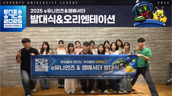 아울러 지난 8월 23일(토)에는 2025 이스포츠 대학리그를 함께 만들어 갈 e유니언즈 및 앰배서더 발대식이 열렸다. 2명의 앰배서더가 선발됐으며, e유니언즈는 캐스터·해설 4명, 제작·연출 4명, 홍보·마케팅 4명 등 총 12명으로 구성됐다. 이들은 발대식과 함께 진행된 오리엔테이션을 시작으로 분야별 전문 실무진 교육을 거쳐 실제 대학리그 방송 경기 및 연계 콘텐츠 제작에 참여하게 되며, 이를 통해 이스포츠 산업 현장에서 요구되는 전문성과 역량을 키워 나갈 예정이다.