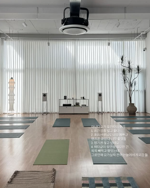 깔끔하면서도 감각적인 인테리어가 시선을 사로잡으며, 이효리는 요가원 오픈을 맞아 수강생들에게 개원 떡을 돌린 뒤 티타임을 가지기도 했다.