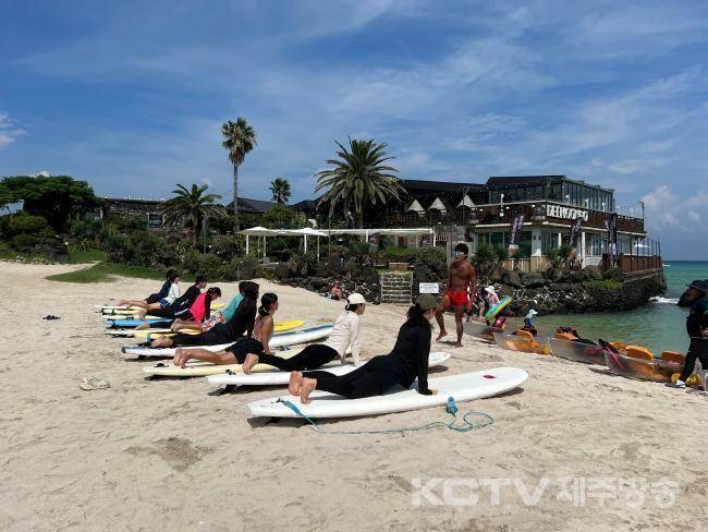 여름의 끝자락, 뜨거움이 가시지 않은 해수욕장이 수상 레저를 즐기려는 도민과 관광객들로 활기가 넘칩니다.