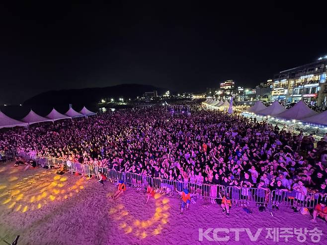 인기 가수들이 무대에 올라 흥겨운 무대를 선사했고 끝없이 물줄기가 쏟아진 워터밤 축제에 관광객과 도민들은 무더위를 날려버립니다.