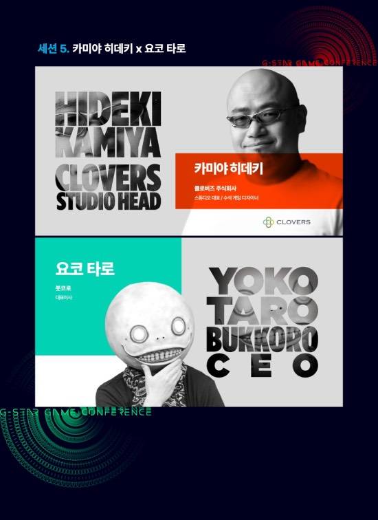 '베요네타'의 카미야 히데키와 '니어: 오토마타'의 요코 타로도 대담을 펼친다. 이들은 서로 다른 방식으로 '게임이 줄 수 있는 이야기의 깊이와 감각'을 탐구해 온 창작자이기에, 이들의 만남은 게임 팬들의 기대감을 높일 것으로 보인다.