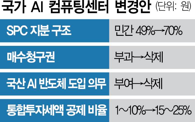 초대형 인공지능(AI) 서버를 짓는 '국가AI컴퓨팅센터' 구축사업이 민간에 더 유리하게 변경된다.