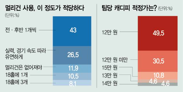 15만 원이 보통인 팀당 캐디피 적정가는 12만 원(49.5%)이라는 답변이 제일 많았다.