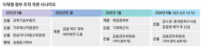 더불어민주당과 정부가 검찰청 폐지와 기획재정부 분리 등을 골자로 한 '정부조직법' 개정안을 오는 25일 국회에서 통과시키기로 예고했다. 여야 간 극한 대치 상황이 벌어지고 있는 가운데 법안 시행 시점이 부처별로 최대 1년 뒤로 잡혀 있어 실제 시행까지 험난한 여정이 예상된다.