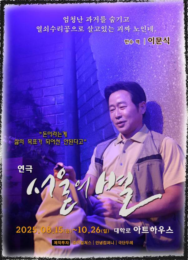 대학로 무대에 따뜻한 인간미를 그려낸 연극 '서울의 별'은 지난달 막을 올렸으며, 오는 10월 26일까지 대학로 아트하우스에서 공연된다.