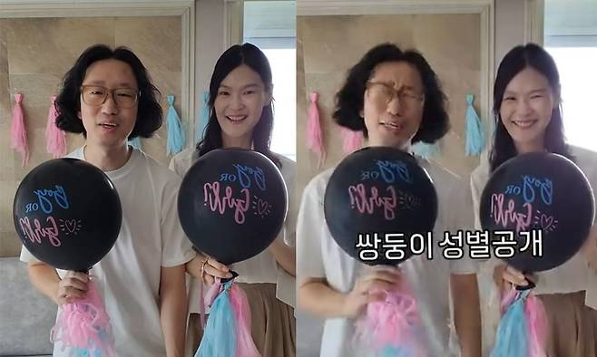 가장 먼저 터진 풍선에는 하늘색 컨퍼티가, 이어서 터진 풍선에는 핑크색 컨퍼티가 나오면서 첫 째는 아들, 둘 째는 딸로 밝혀졌다.