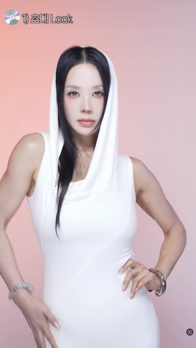 첫 번째는 1998년 노래 ‘초대’ 콘셉트로 순백의 후드 드레스로 여성스러우면서도 우아한 매력을 자아낸다.