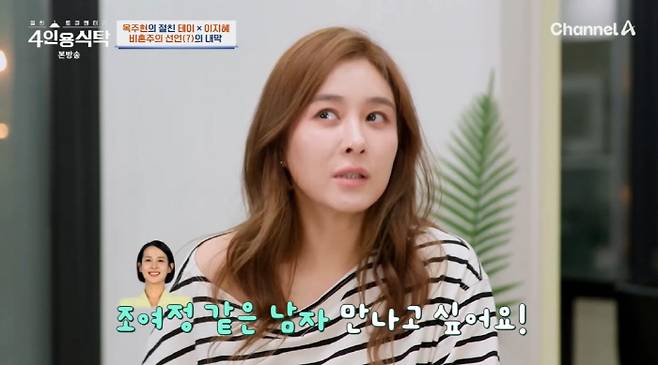 옥주현은 "정해놓지는 않았지만, 서로의 곁을 내어준다는 건 쉽지 않다는 걸 나이가 들어서 더 잘 알지 않나"면서 "조여정 같은 남자 만나고 싶다. 여정이 같은 남자가 있으면 결혼을 하고 싶다"고 했다. 이어 그는 "주변에 내가 마음을 두는 사람을 보면 배울 점이 많은 사람, 버팀목이 되어 줄 남자"라며 이상형을 밝혔다.