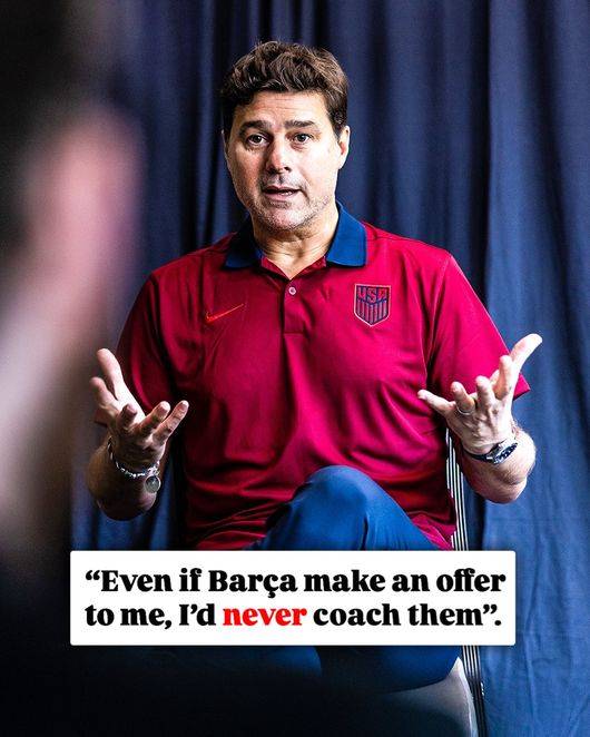 매체는 "포체티노 감독은 '엘 치링기토'와 인터뷰에서 작심발언을 쏟아냈다. 현재 미국 대표팀을 지휘 중인 그는 절대로 바르셀로나 감독을 하지 않을 것이라고 거듭 강조하며 바르셀로나의 상징적인 문구에 대해 공개적으로 의문을 제기했다"라고 전했다.