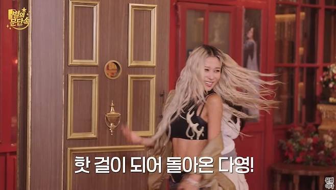 이날 문틈 사이로 다영을 본 마마무 문별은 "정말 예뻐졌다"라고 깜짝 놀라며 "우리가 운동하고 있거나 민낯에 봐서 그런 것 같다. 이렇게 꾸민 모습은 오랜만이다"라고 밝혔다. 이어 다영이 등장하자 문별은 "왜 이렇게 '핫 걸'이 됐냐"라고 감탄했고, 다영은 자신감 있게 포즈를 취했다.