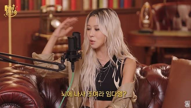 그런 가운데 꾸준히 운동하는 방법을 묻는 사연이 도착했다. 문별이 루틴을 공개해달라고 하자 다영은 "연구 결과를 하나 읽었다. 사람이 비속어를 쓰면 스트레스가 해소가 된다더라"라고 말문을 열었다. 이어 다영은 "근데 비속어를 쓰면 안 되지 않냐. 그래서 어떤 센 말이 있을까 생각했다. 만약 제가 과자가 먹고 싶으면 스스로 이 말을 읊는다. '뇌에 나사를 조이자'라고. 뇌에 나사가 풀렸다고 얘기하는데, 정신 차리란 뜻으로 말한다.