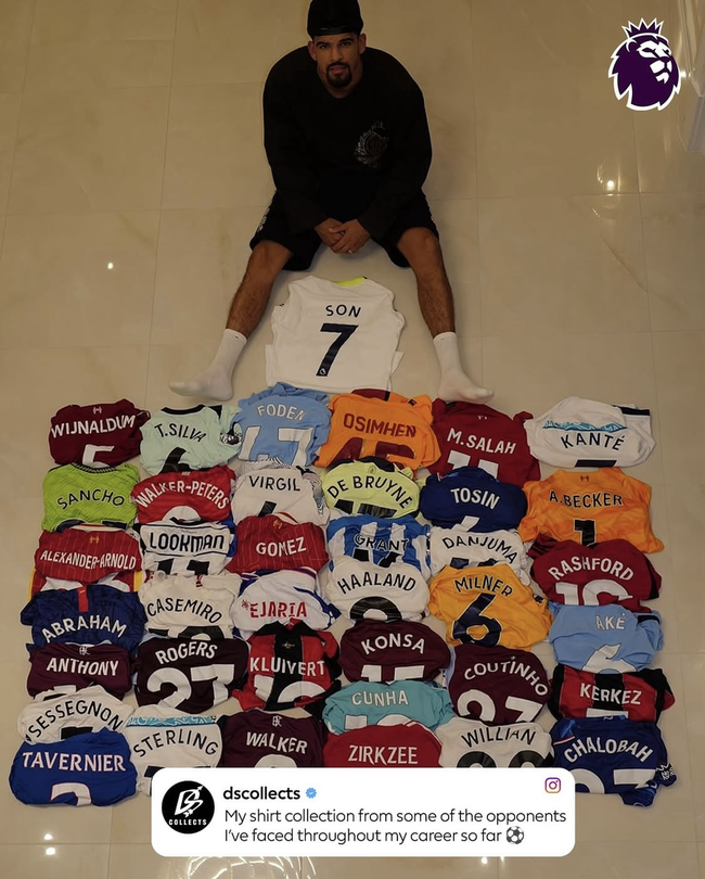 다음은 솔란케 차례. 솔란케는 ‘dscollects’를 통해 “내가 지금까지 선수 생활을 하면서 맞붙었던 상대들로부터 받은 유니폼 콜렉션”이라는 문구와 함께 총 39장의 유니폼을 늘어 놓은 사진을 게재했다. 케빈 더 브라위너, 모하메드 살라, 은골로 캉테, 엘링 홀란드, 카세미루, 티아고 실바 등 쟁쟁한 선수들의 유니폼을 찾아볼 수 있었다.