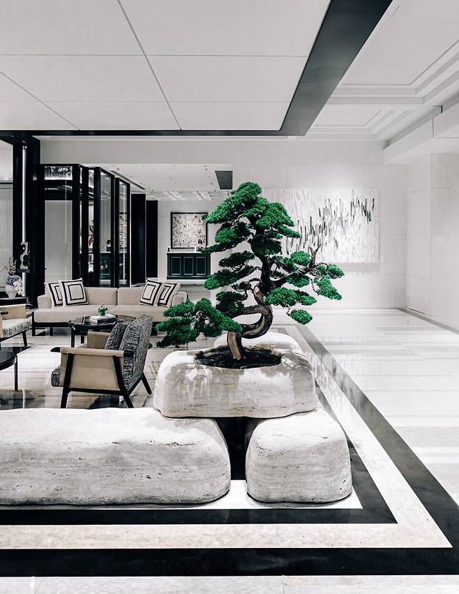 리츠칼튼 쑤저우의 디자인은 도시가 품은 고대 정원과 운하에서 영감을 받았다. 흰색과 검정색의 대비는 전통 가옥의 색감을 따랐고, 자수와 물안개 낀 풍경, 정원과 돌 같은 쑤저우의 디테일이 곳곳에 배치됐다. 중국 내 리츠칼튼 중 최초로 도입한 좌식 체크인, 로비 중앙의 살아 있는 소나무 분재, 그리고 이를 담은 자연석 화분까지. 쑤저우의 정수를 담은 정원을 재현하려는 집념이 공간 곳곳에 배어 있다. 참고로 소나무 분재는 똑같은 모양의 2그루를 돌려가며 관리 중이라고 한다.