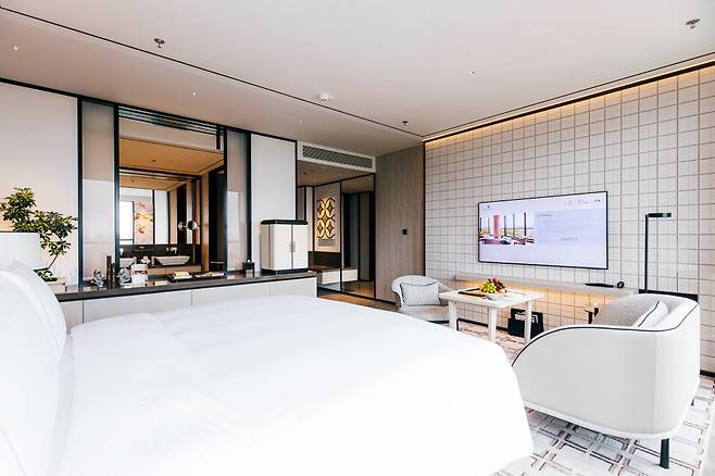 190개의 객실은 절제된 동양적 미학 위에 현대적 감각을 더했다. 흰 벽과 검은 선이 만든 구조미, 실개천과 다리를 형상화한 자수 문양이 은근한 지역성을 드러낸다. 객실에도 살아 있는 식물이 있다. 가장 넓은 리츠칼튼 스위트에서는 306m2 규모의 테라스에서 구수 시가지와 대표 정원의 파노라마를 한눈에 담을 수 있다.