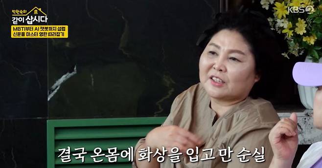이를 듣던 이순실은 "온몸 벗겨보면 고문받은 흔적이 있다"면서 초연한 표정으로 흉터를 드러냈다.