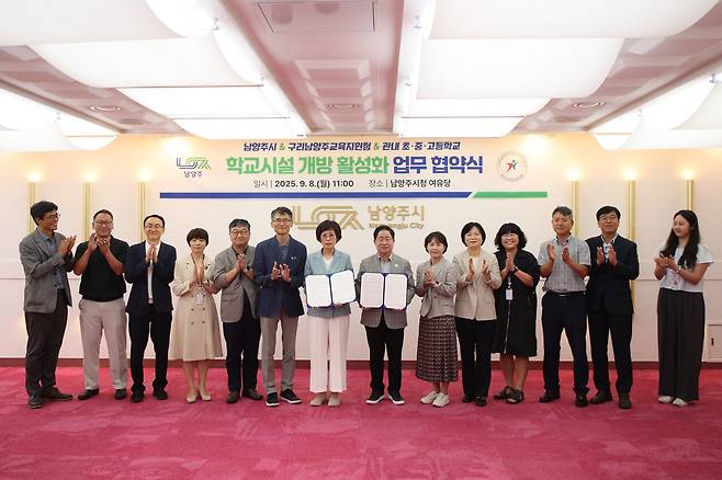 남양주시(시장 주광덕)가 지난 8일 시청 여유당에서 경기도구리남양주교육지원청 및 관내 초·중·고등학교와 '학교시설 개방 활성화를 위한 업무협약'을 체결했다.