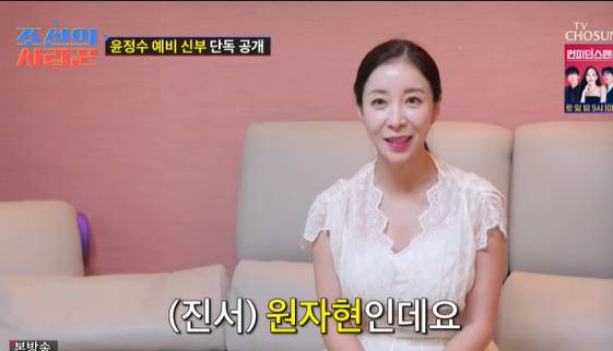 [OSEN=김수형 기자]'조선의 사랑꾼' 에서 윤정수가 베일에 싸였던 예비신부를 최초공개, 바로 광저우 여신 원자현. 현재는 원진서로 개명한 근황을 전해 눈길을 끌었다.