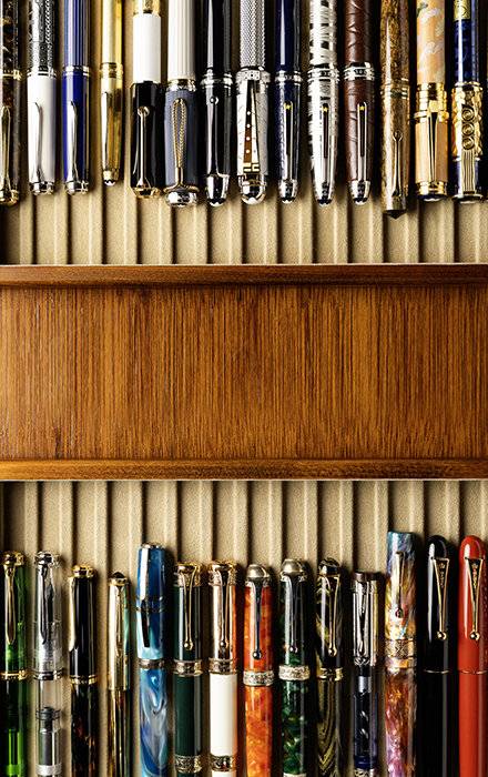 펠리칸의 만년필로 ‘빈티지 500NN’부터 ‘M1000 르네상스 브라운’까지 종류가 다양하다. 숫자가 높을수록 펜과 촉의 크기가 커진다.