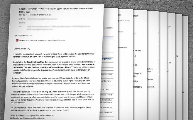 7월 15일 열린 '2025 북한인권 서울포럼'에서 기조강연을 해달라고 초청을 했던 겁니다.
