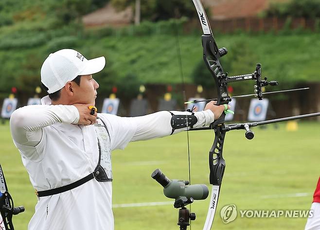 (광주=연합뉴스) 김성민 기자 = 9일 광주 남구 광주국제양궁장에서 열린 2025 세계양궁선수권대회 리커브 개인전 예선에서 대한민국 이우석이 화살을 쏘고 있다. 2025.9.9